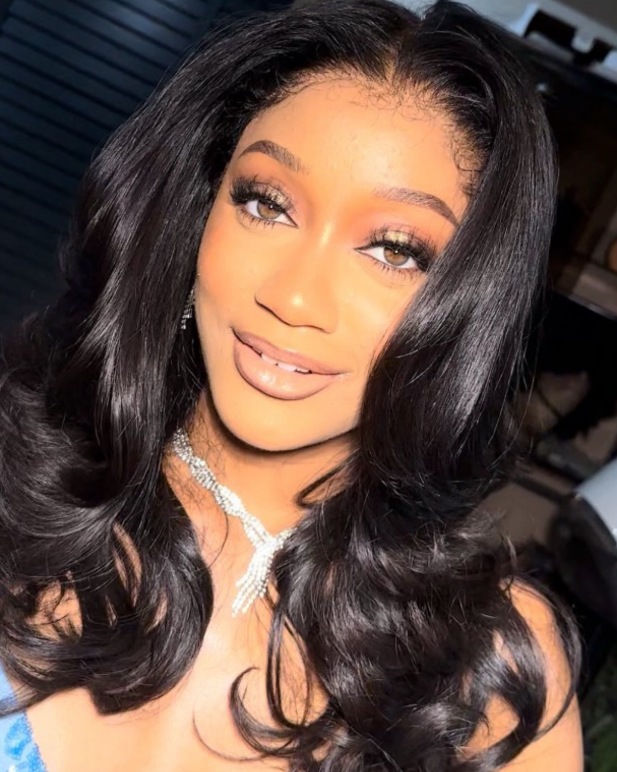 Gabbie Unit is a couture wavy wig featuring detailed layers and a custom hairline in natural black for a polished, high-end look.